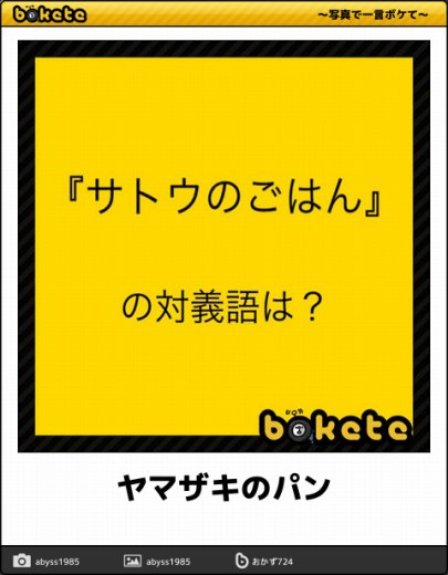 人気サイト「bokete」の殿堂ボケ、人気ボケの他、日々の日別ボケランキングを毎日アップしています。