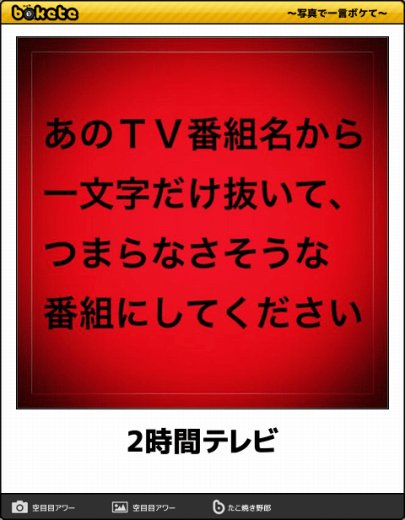 人気サイト「bokete」の殿堂ボケ、人気ボケの他、日々の日別ボケランキングを毎日アップしています。