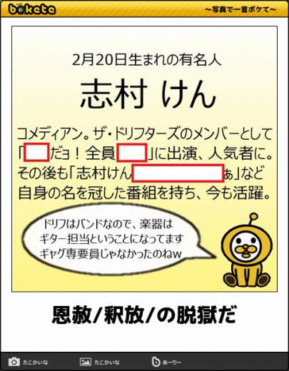 人気サイト「bokete」の殿堂ボケ、人気ボケの他、日々の日別ボケランキングを毎日アップしています。